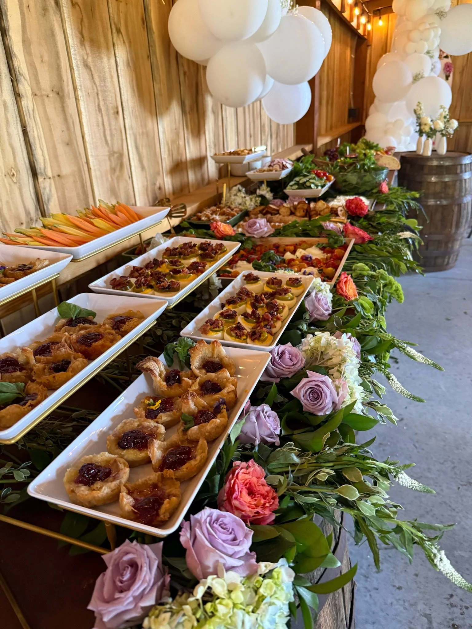 All grazing tables include biodegradable paper as the surface, allowing for flexible décor and floral arrangements while making cleanup a breeze. Grazing tables are traditionally a flat lay, but you’re welcome to provide elevation pieces—or borrow and return ours for an additional fee. Looking for something more tailored? We’re happy to work with you to create a custom menu that reflects your theme, preferences, and dietary needs. Let’s get the conversation started. Use the form below to tell us what you’re planning—we’d love to hear about your vision!